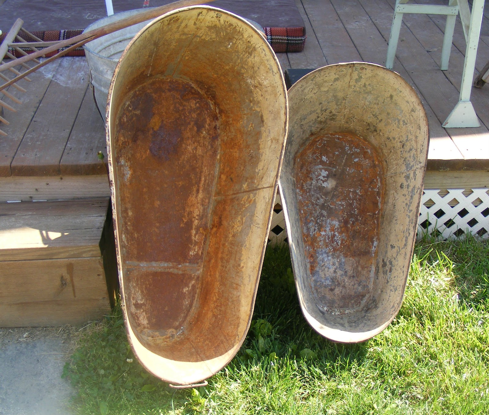Very rare 1800's slipper galvanized childrens tubs.I should have got a side view because they are really awesome. They are smaller than they look in the pic.I'm keeping the little one.The other is for Sale $100 plus shipping if you are interested email me.(They normally sell for $250+ if you can find them) I plan to list it when I get time but that may be a few weeks...Hubby and I have a clean out of a house hopefully this weekend.Excited to see what might be there maybe nothing but maybe a treasure you never know..Well girls I'm taking a PJ day today and enjoying the rain day.Got some shows to catch up on and the new Primitive Place and Country Sampler magazine to read.Stroganoff slow cooking in the oven for dinner.Warm Blessings!~Amy